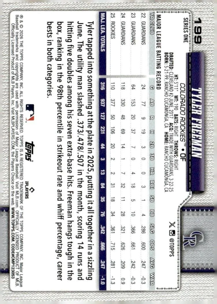 This is a nice example of a 2026 Topps #199 Tyler Freeman