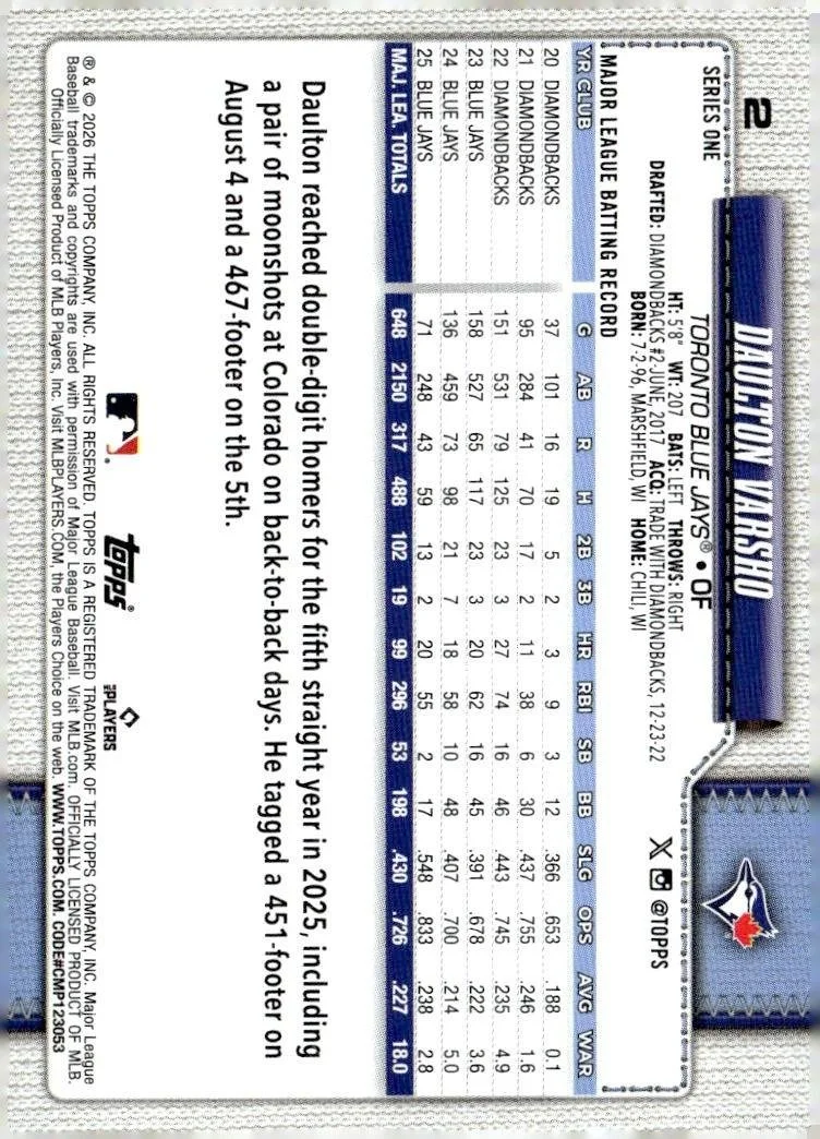 This is a nice example of a 2026 Topps #2 Daulton Varsho