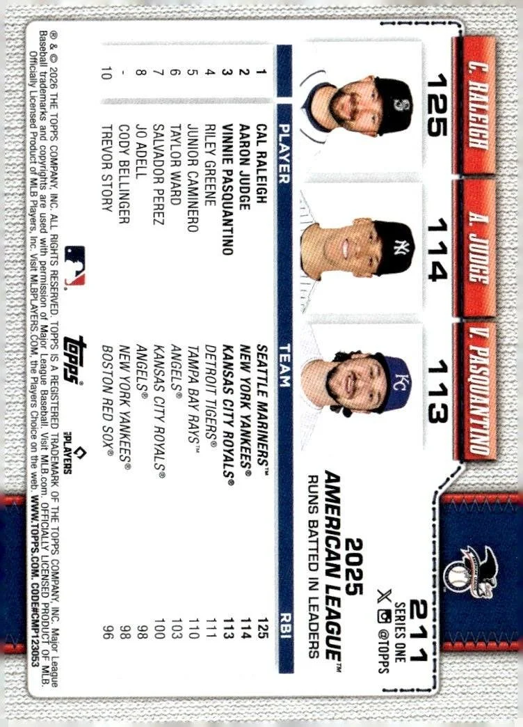 This is a nice example of a 2026 Topps #211 American League Leaders RBI