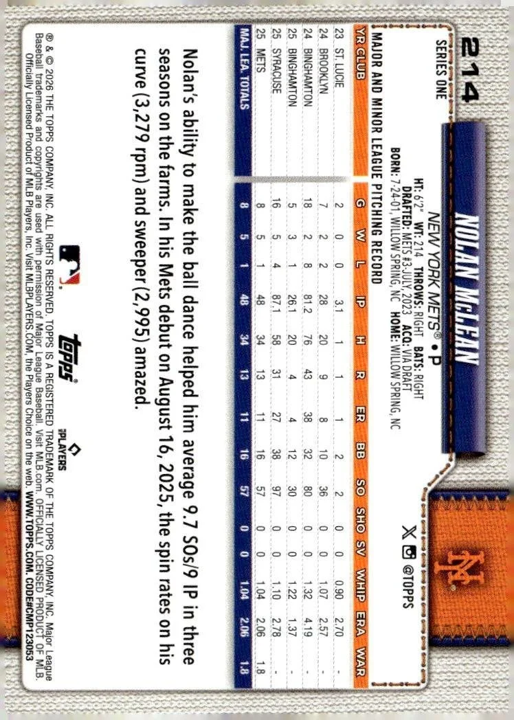 2026 Topps #214 Nolan McLean