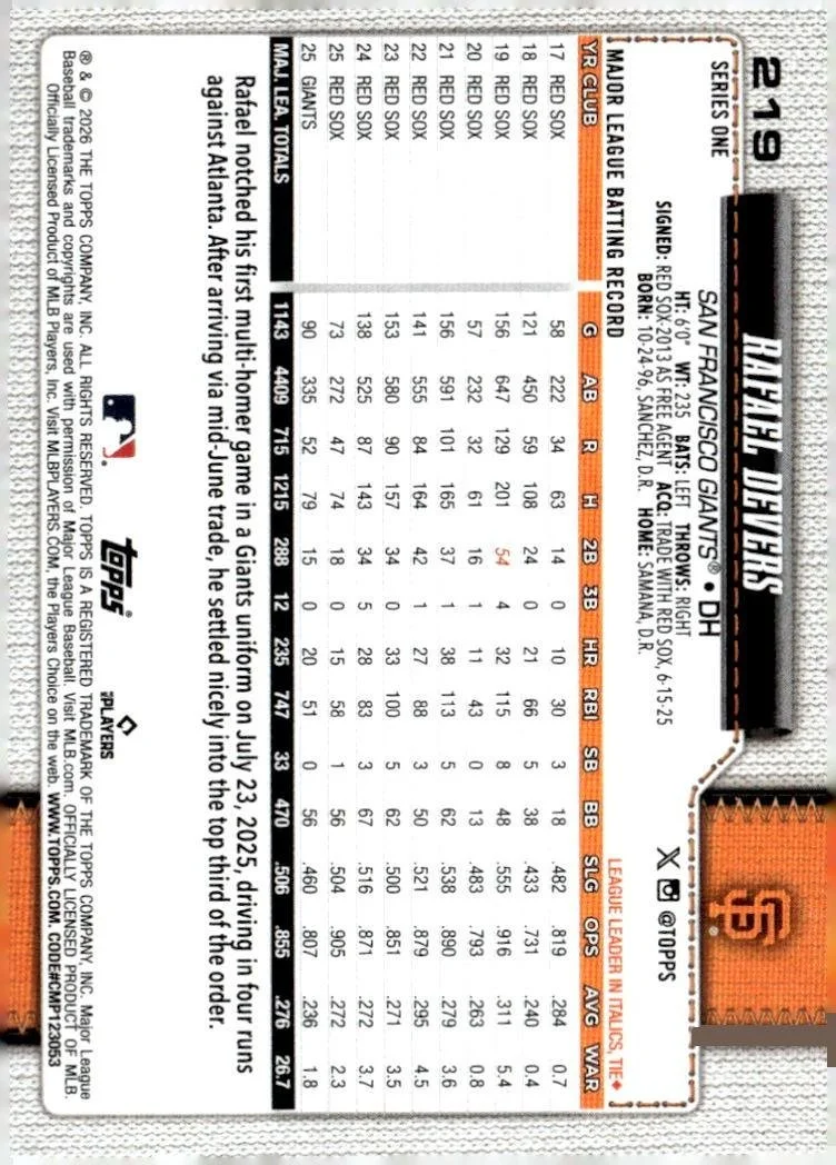 This is a nice example of a 2026 Topps #219 Rafael Devers