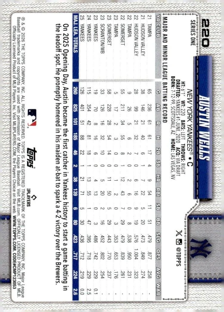 This is a nice example of a 2026 Topps #220 Austin Wells