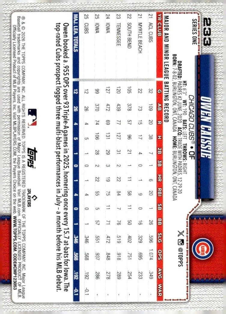 This is a nice example of a 2026 Topps #233 Owen Caissie