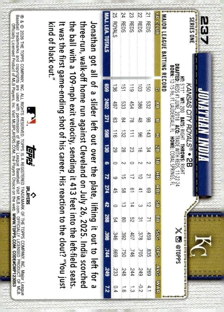This is a nice example of a 2026 Topps #237 Jonathan India