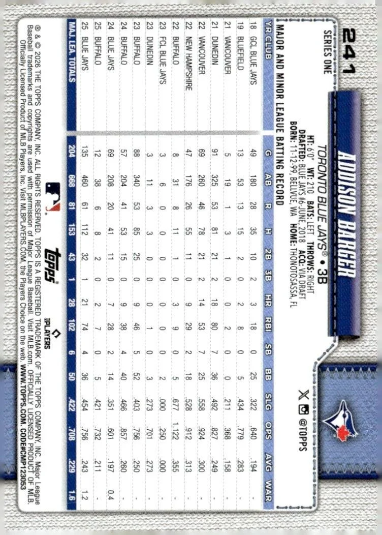 This is a nice example of a 2026 Topps #241 Addison Barger