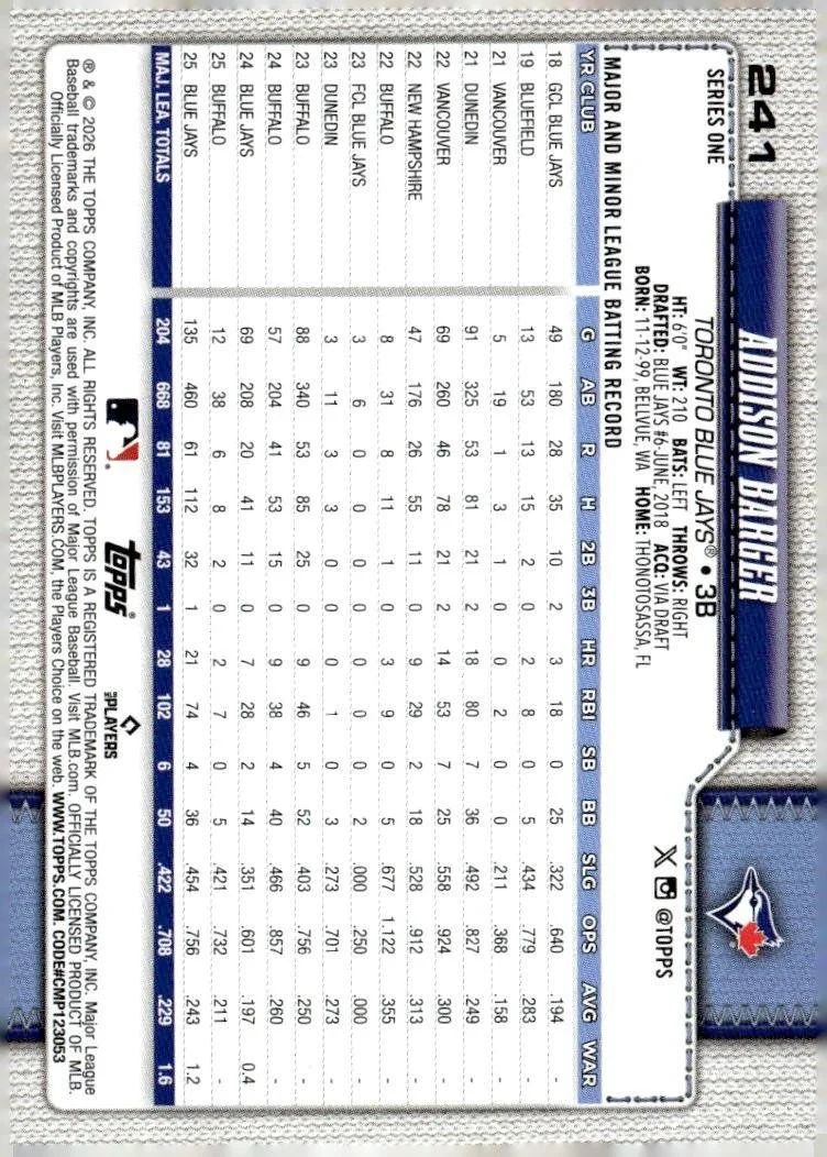 This is a nice example of a 2026 Topps #241 Addison Barger