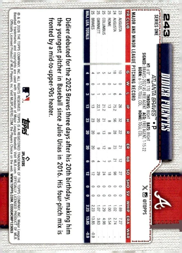 In 2026 Didier Fuentes played for the Atlanta Braves.