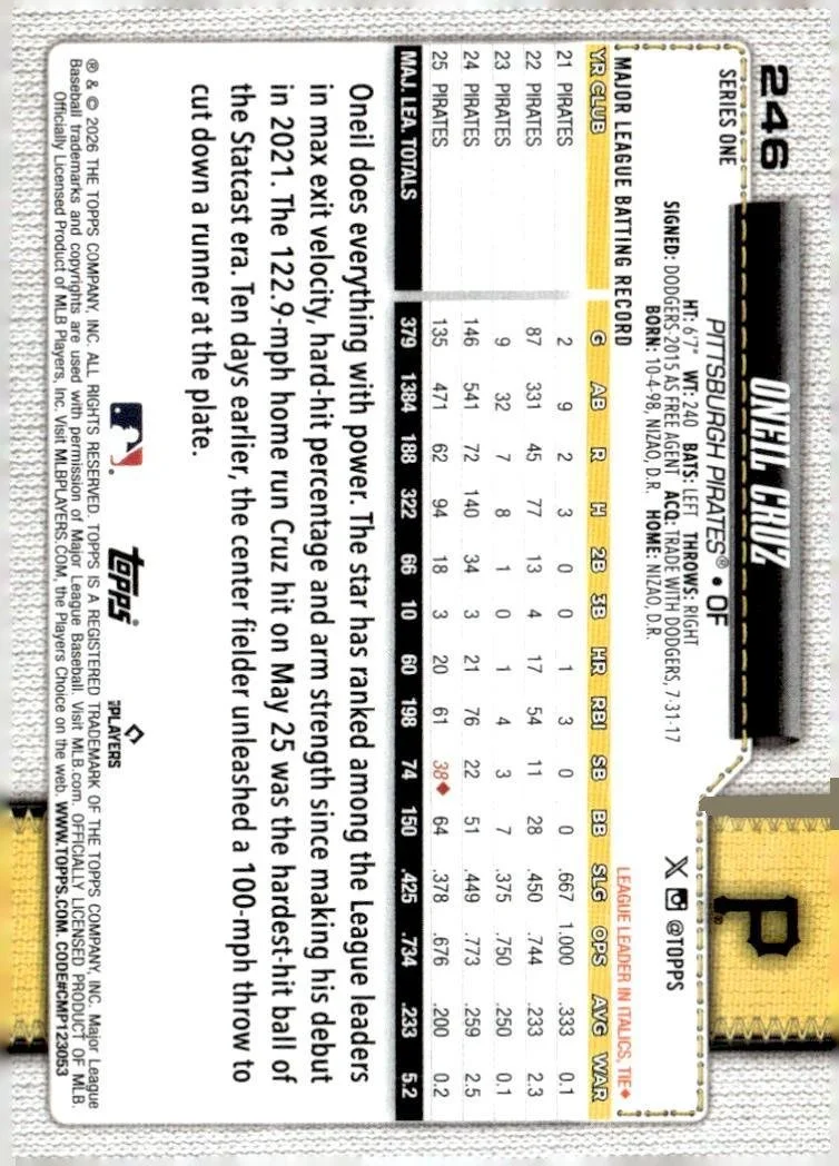 This is a nice example of a 2026 Topps #246 Oneil Cruz