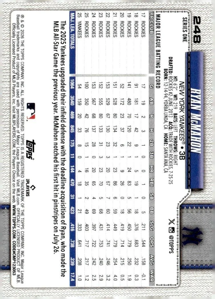 This is a nice example of a 2026 Topps #248 Ryan McMahon