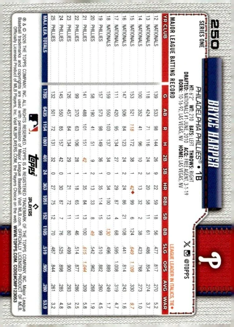 This is a nice example of a 2026 Topps #250 Bryce Harper