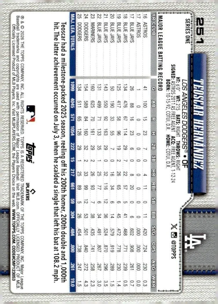 This is a nice example of a 2026 Topps #251 Teoscar Hernández