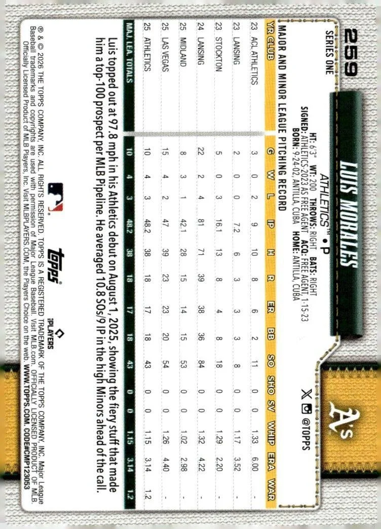 This is a nice example of a 2026 Topps #259 Luis Morales