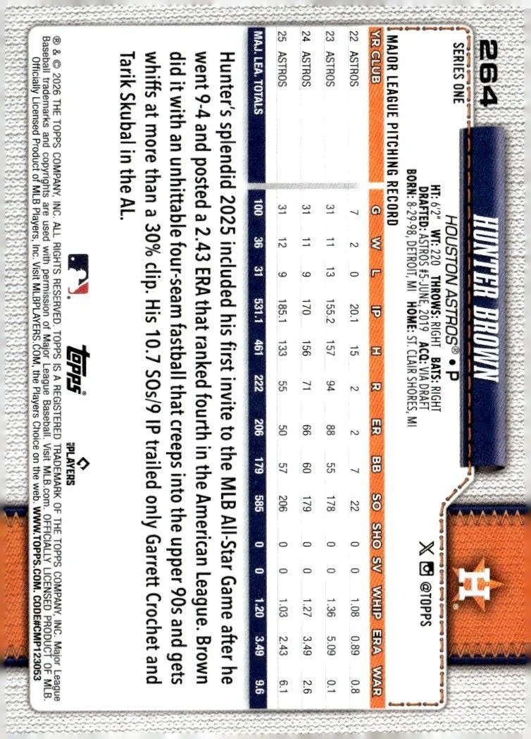 This is a nice example of a 2026 Topps #264 Hunter Brown