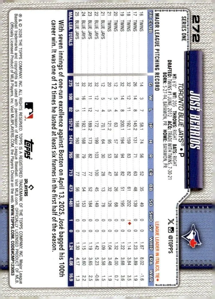This is a nice example of a 2026 Topps #272 José Berríos