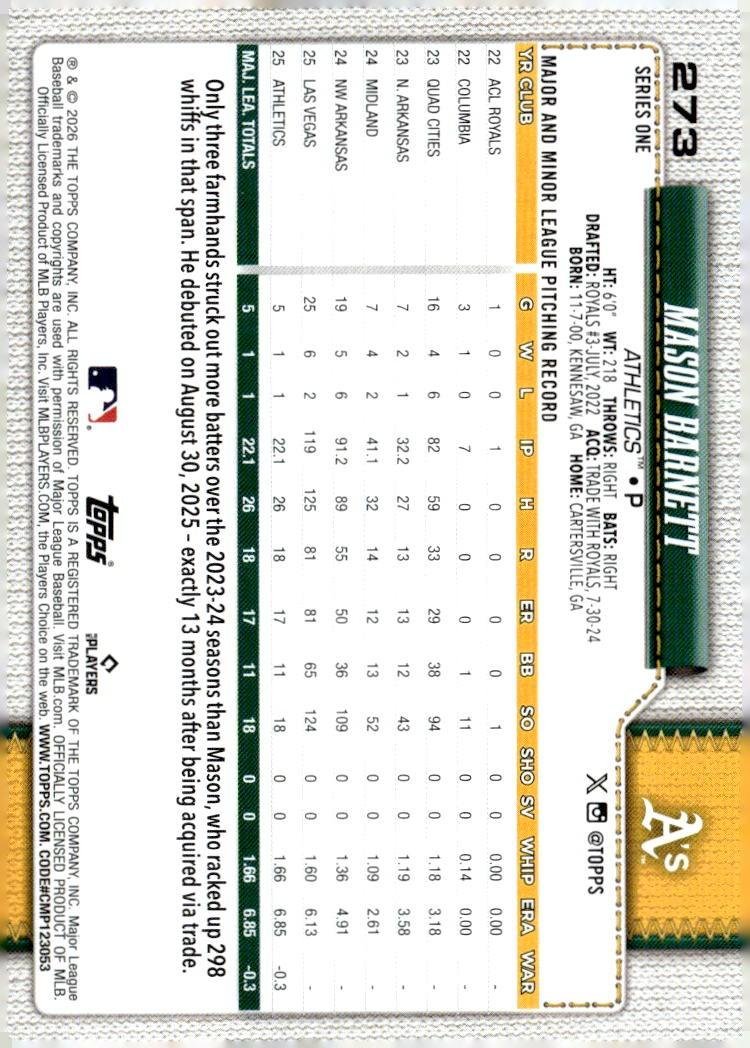 This is a nice example of a 2026 Topps #273 Mason Barnett