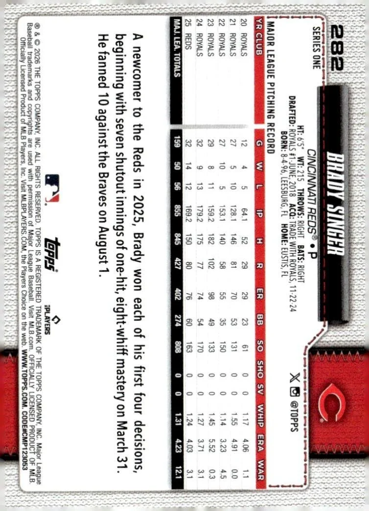 This is a nice example of a 2026 Topps #282 Brady Singer