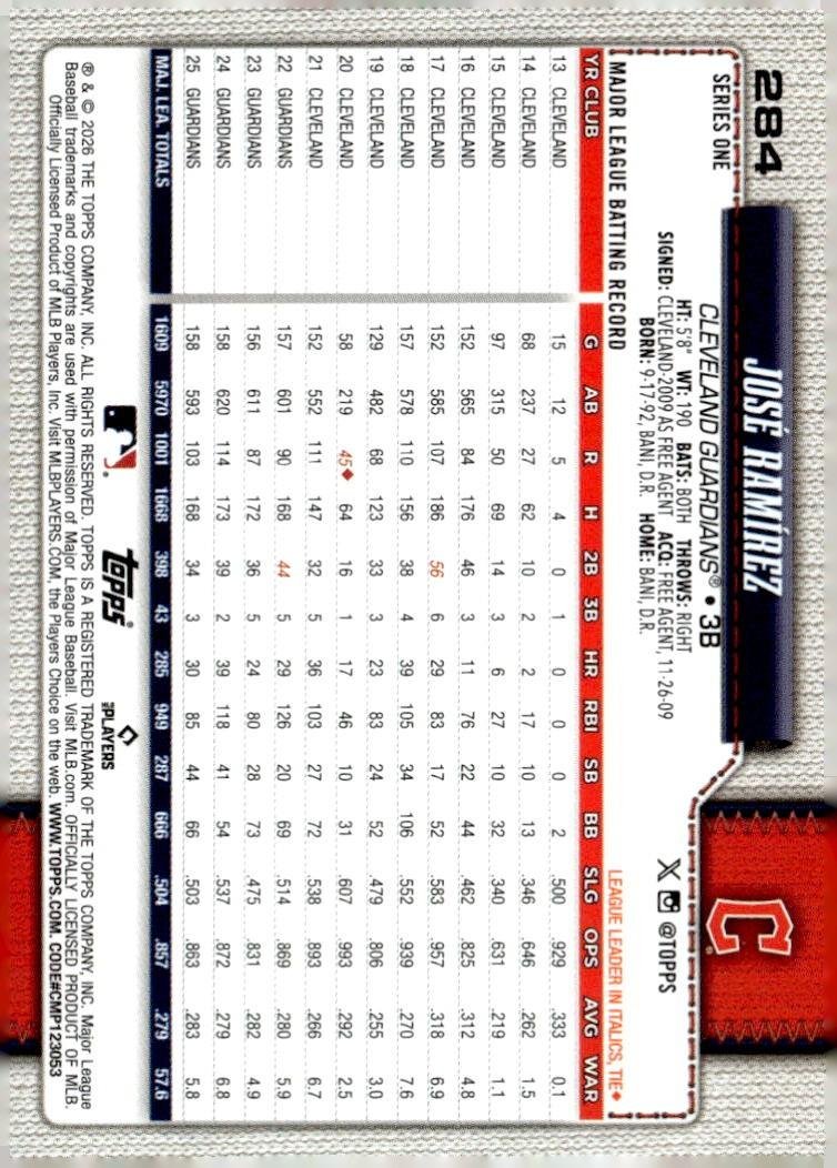 This is a nice example of a 2026 Topps #284 José Ramírez
