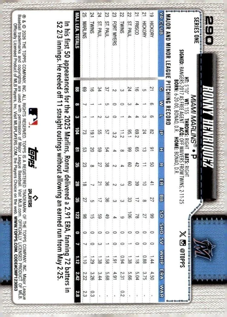 This is a nice example of a 2026 Topps #290 Ronny Henriquez