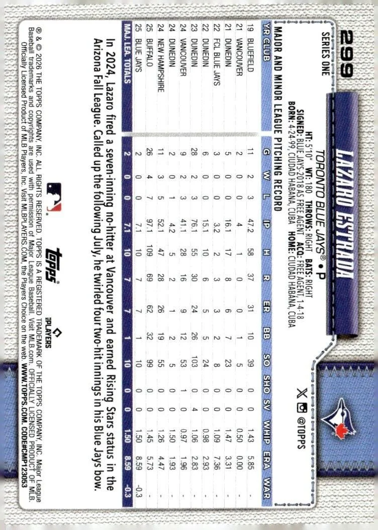 This is a nice example of a 2026 Topps #299 Lazaro Estrada