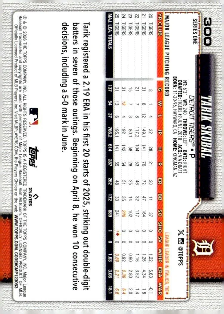 This is a nice example of a 2026 Topps #300 Tarik Skubal