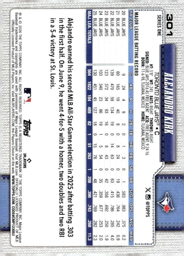 This is a nice example of a 2026 Topps #301 Alejandro Kirk