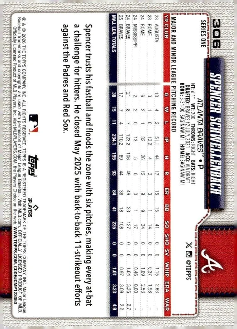 This is a nice example of a 2026 Topps #306 Spencer Schwellenbach