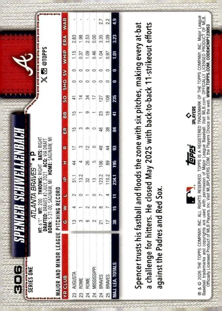 This is a nice example of a 2026 Topps #306 Spencer Schwellenbach