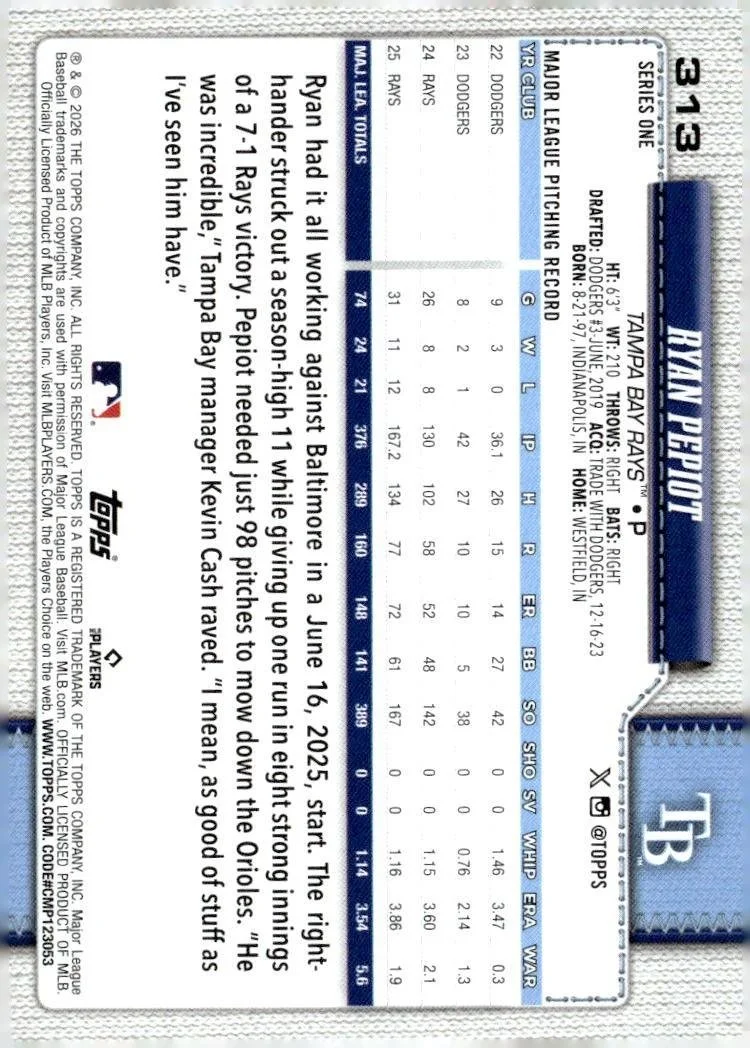 This is a nice example of a 2026 Topps #313 Ryan Pepiot