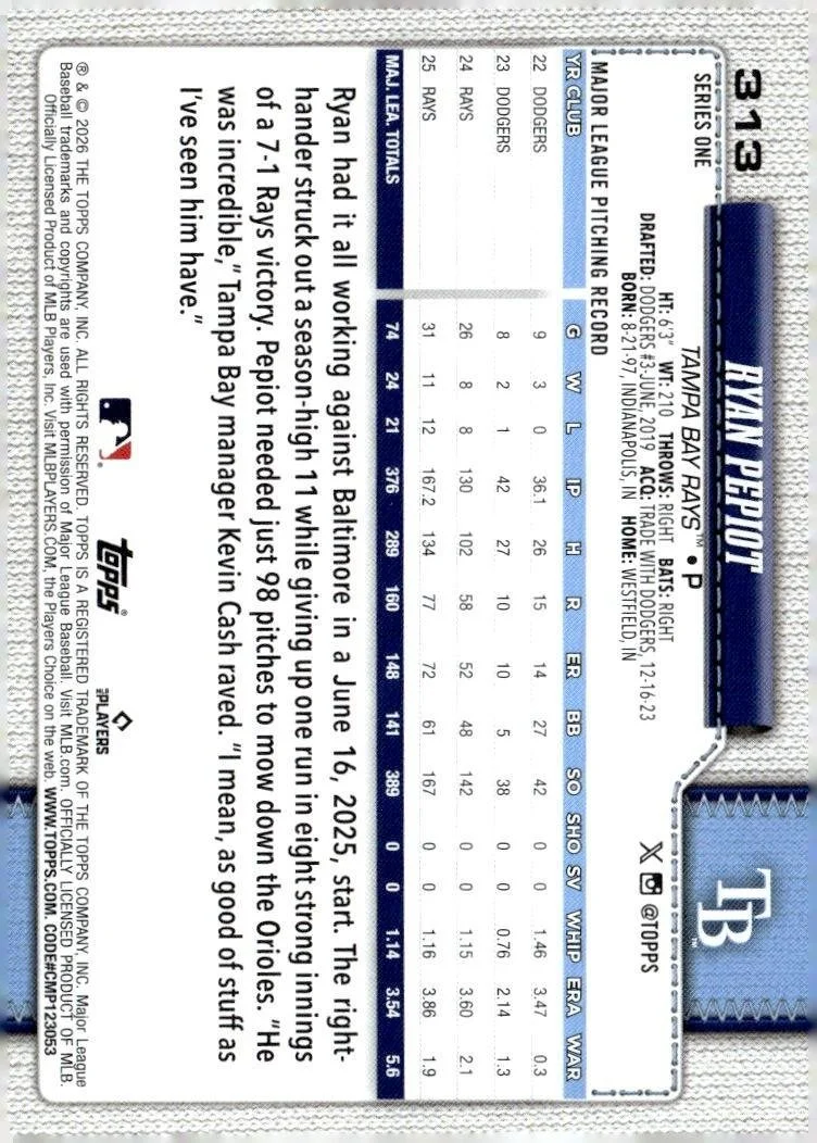 This is a nice example of a 2026 Topps #313 Ryan Pepiot