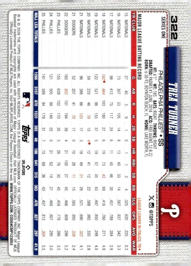 This is a nice example of a 2026 Topps #322 Trea Turner