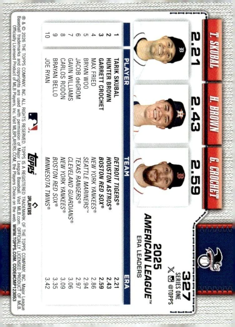 This is a nice example of a 2026 Topps #327 American League Leaders ERA