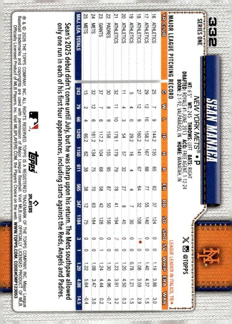 This is a nice example of a 2026 Topps #332 Sean Manaea