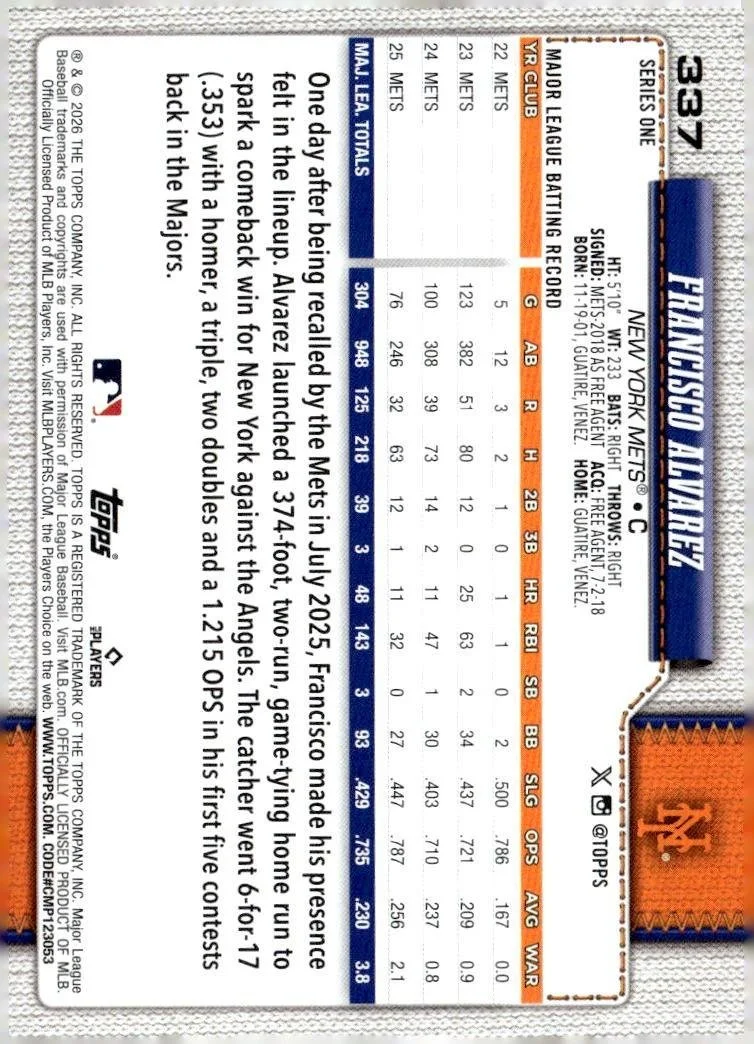 This is a nice example of a 2026 Topps #337 Francisco Alvarez