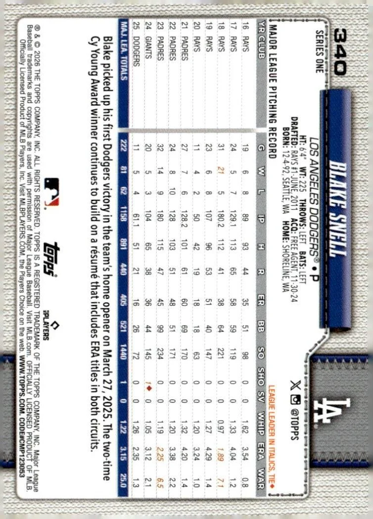 This is a nice example of a 2026 Topps #340 Blake Snell