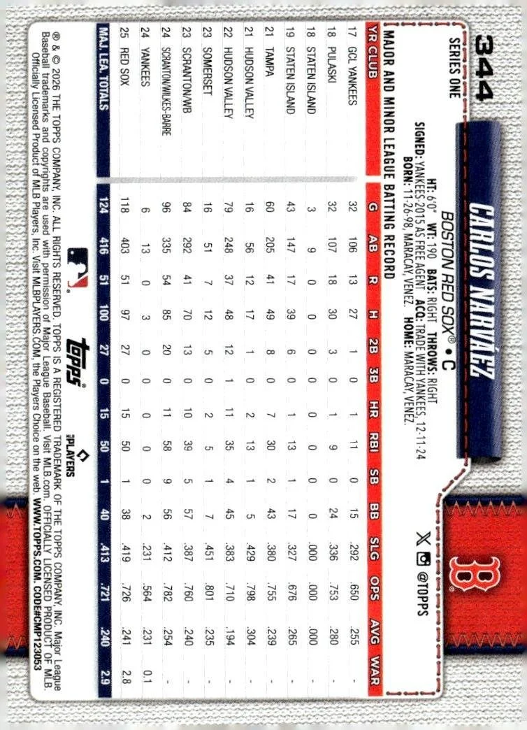 In 2026 Carlos Narváez played for the Boston Red Sox.