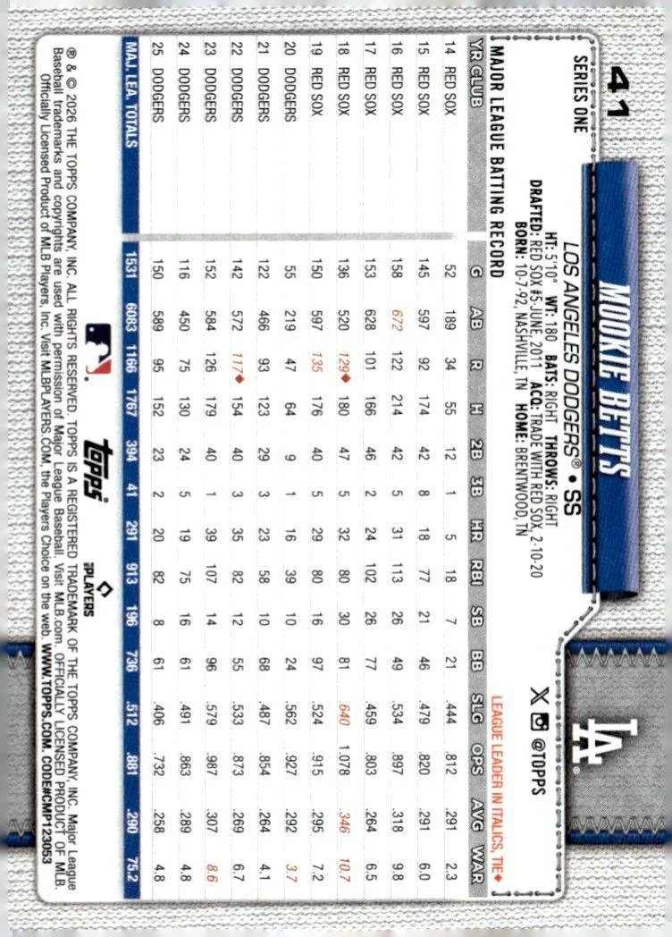 This is a nice example of a 2026 Topps #41 Mookie Betts