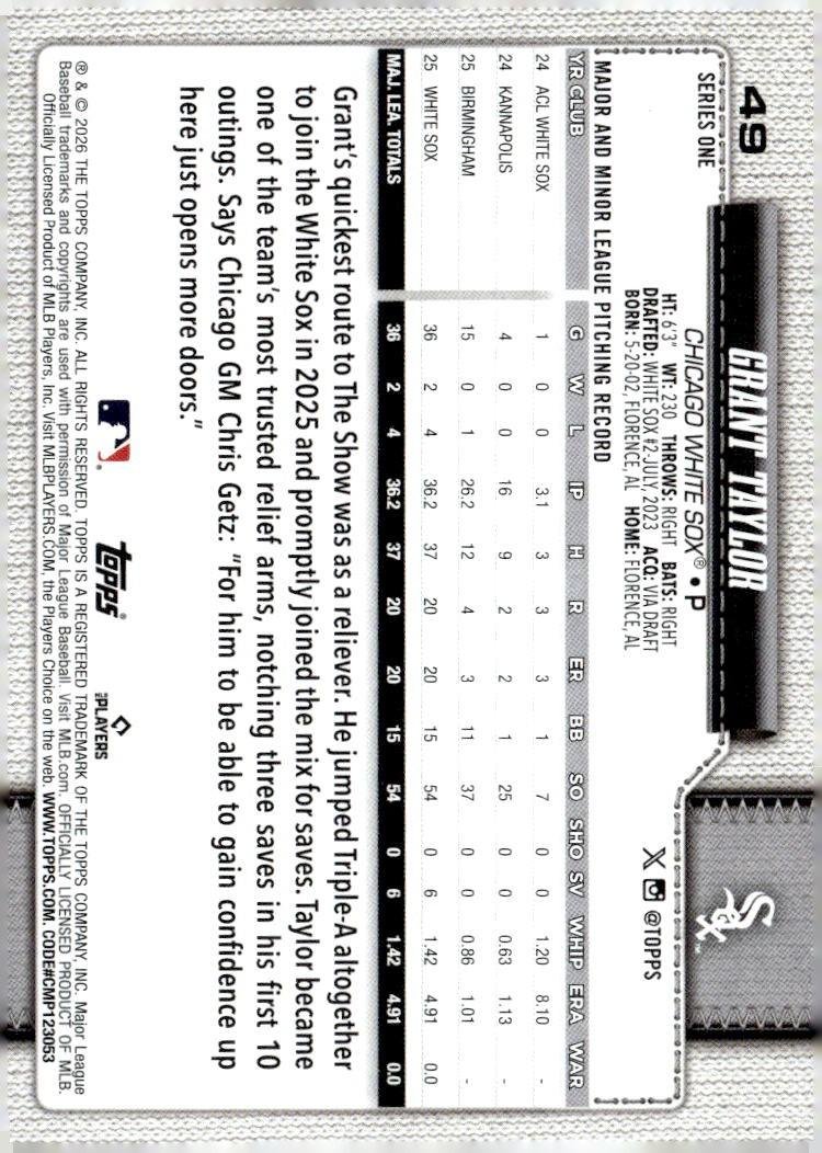 This is a nice example of a 2026 Topps #49 Grant Taylor