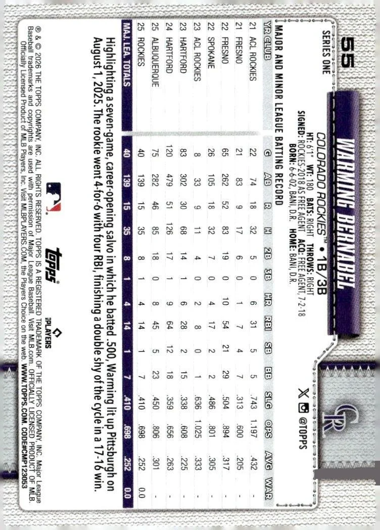 In 2026 Warming Bernabel played for the Colorado Rockies.