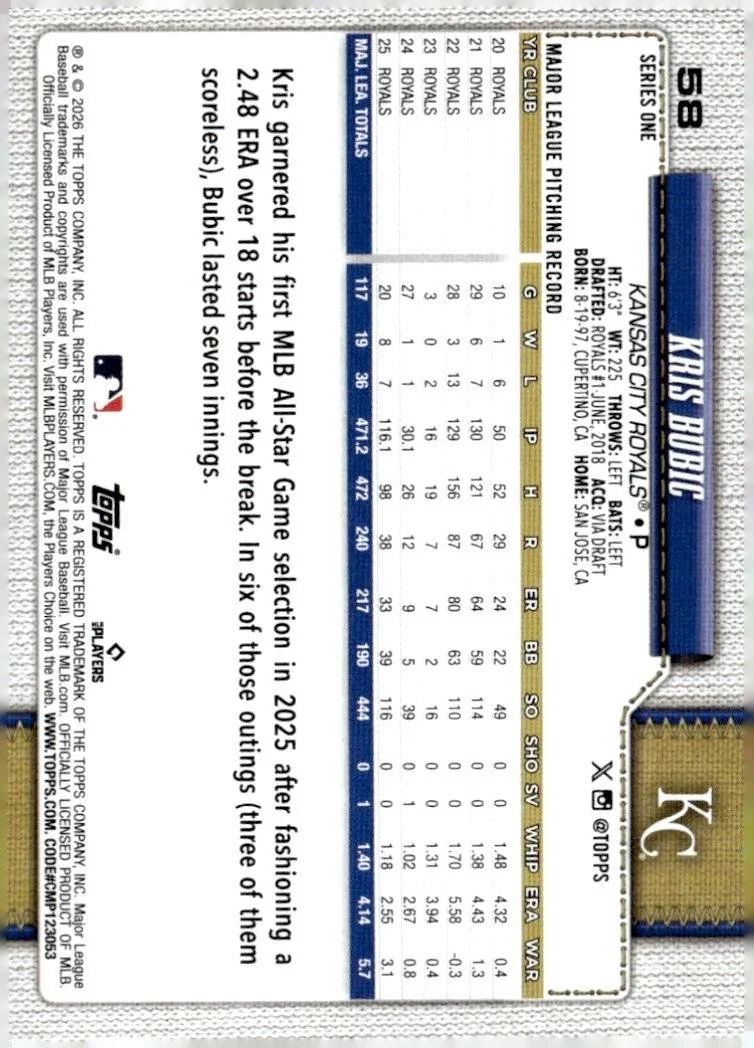 This is a nice example of a 2026 Topps #58 Kris Bubic