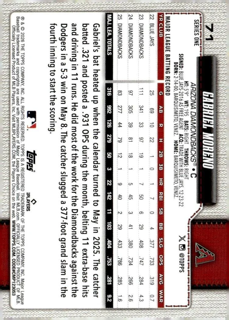 This is a nice example of a 2026 Topps #71 Gabriel Moreno