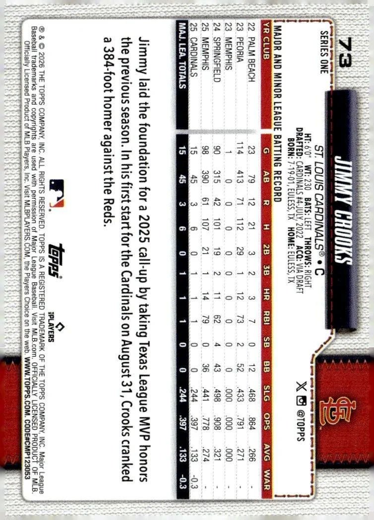 This is a nice example of a 2026 Topps #73 Jimmy Crooks