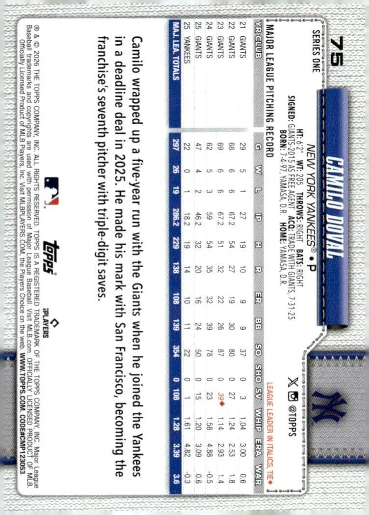 This is a nice example of a 2026 Topps #75 Camilo Doval