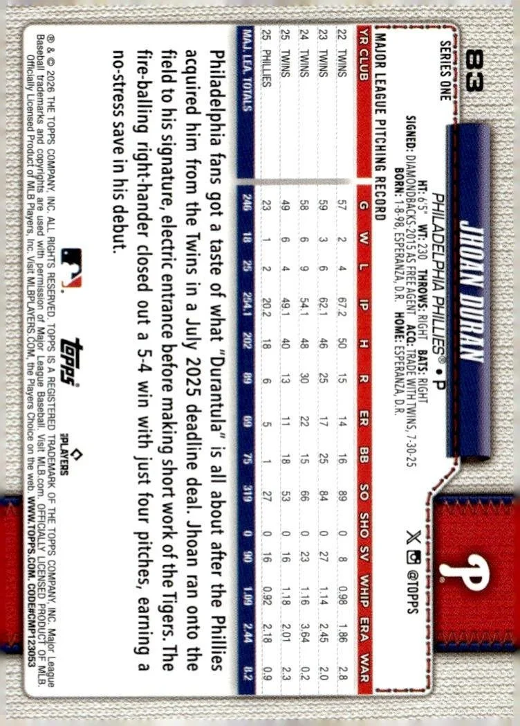 This is a nice example of a 2026 Topps #83 Jhoan Duran