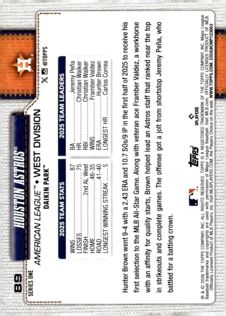 This is a nice example of a 2026 Topps #89 Houston Astros