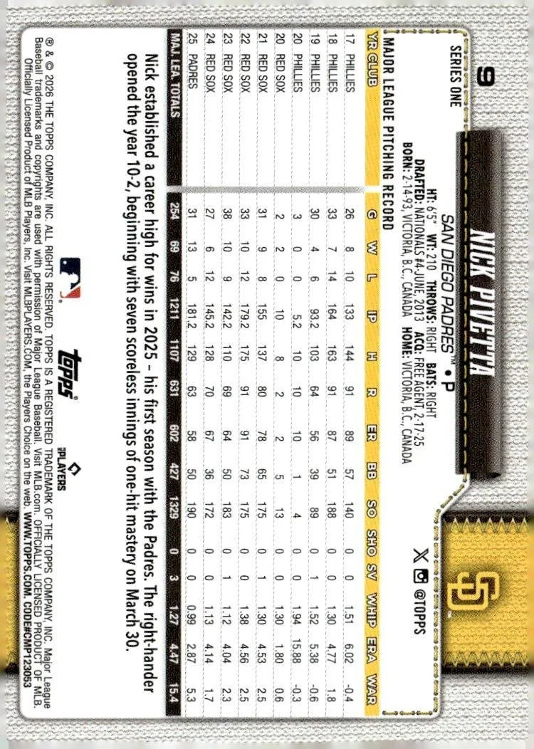 This is a nice example of a 2026 Topps #9 Nick Pivetta