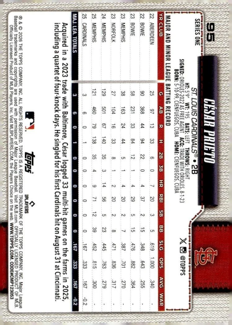 This is a nice example of a 2026 Topps #95 Cesar Prieto