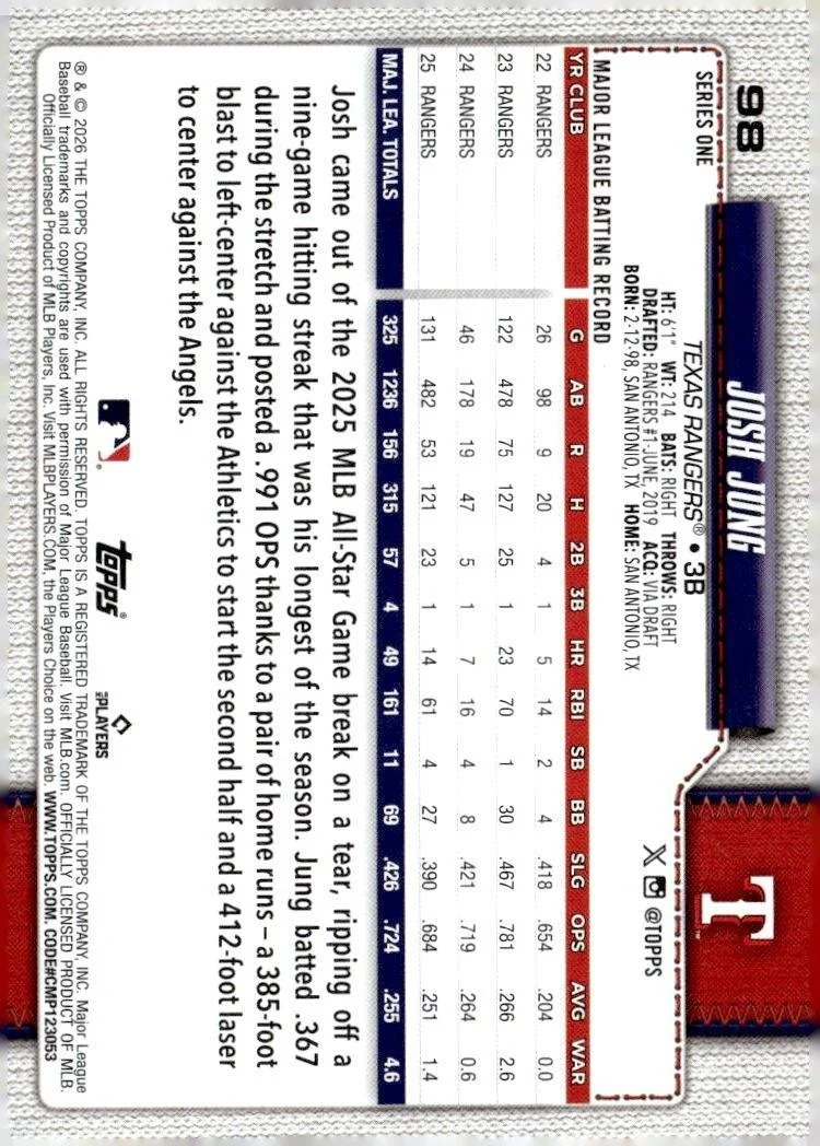 This is a nice example of a 2026 Topps #98 Josh Jung