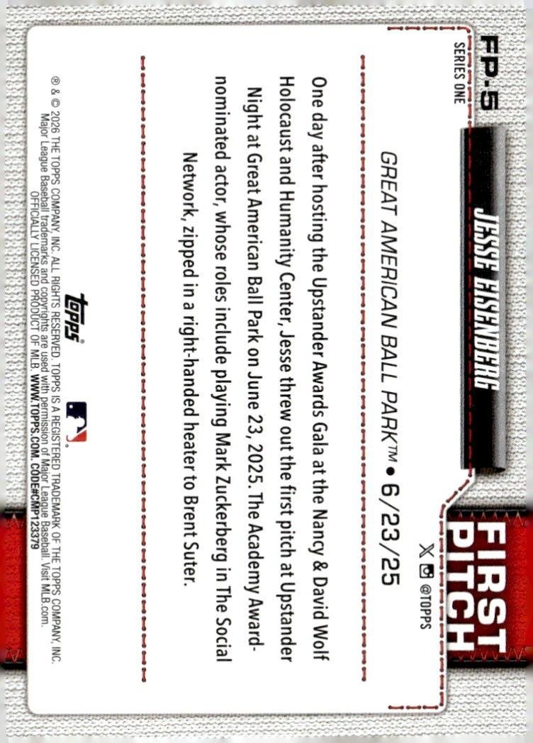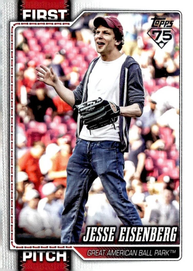 This is a nice example of a 2026 Topps #FP-5 Jesse Eisenberg First Pitch