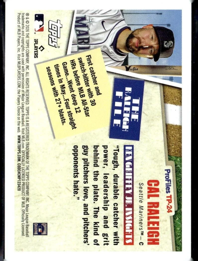 This is a nice example of a 2026 Topps #TP-24 Cal Raleigh Topps Profiles