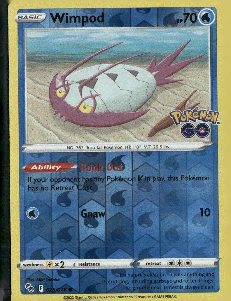 This is a nice example of a Pokemon GO #025/078 Wimpod Reverse Holo